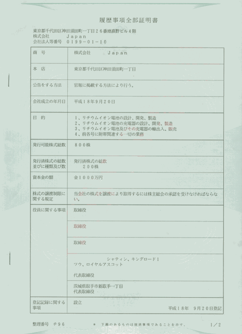 日本公司注冊證書
